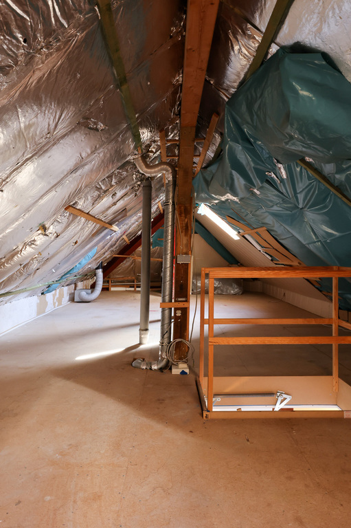 4 Zimmer, Küche offen zum Wohnbereich, Diele, Tageslichtbad nebst Badewanne & Dusche, Gäste-WC, Terrasse, Spitzboden als Nutzfläche, Doppelverglasung, Gas-Zentralheizung, Gegensprechanlage sowie 2 TG-Stellplätze sind inklusive.