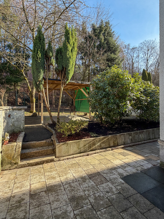Gesamt 8 Zimmer, 3 Küchen, Dielen, 3 Tageslicht-Bäder, Garten, Terrasse, isolierverglaste Fenster, Gas-Zentralheizung – Baujahr 1991, 1 Garage sowie 2 davor befindlichen Außenstellplätze sind inklusive.