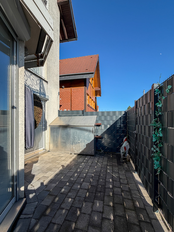 2 Zimmer, Küche nebst EBK, Diele, Abstellraum, separater Hauseingang, Duschbad, Terrasse nebst Fahrradgarage u. Stromanschluss, Doppelverglasung in weißen Kunststoffrahmen nebst Außenjalousien, Fußbodenheizung sowie eine Öl-Zentralheizung inkl. WW – Baujahr 2006 sind inklusive.